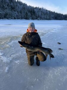 Enligt ryktet på stan sägs det att Torsten var ute på pimpelfiske och lyckades fånga en gädda på 5,55kg på tunn nylonlina och liten pimpelkrok.